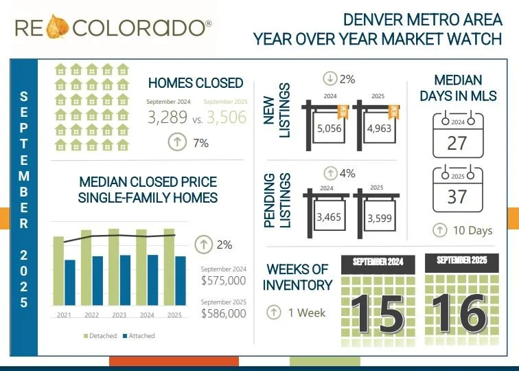 The Denver metro housing market in September 2025 showed signs of steady activity. Buyers remain active, with 3,506 homes closing—a 7% increase from last September, and 3,883 homes going under contract, up 4% year-over-year. The median closed price was $586,000, up by 2% year over year, reflecting a balanced market. Homes spent a median of 37 days on the market, 10 days longer compared to last year, giving buyers more time to consider their options. Meanwhile, new listings were slightly down 2%, making it important for sellers to price homes accurately and present them well. For buyers, the combination of solid inventory and extra time to negotiate creates opportunities to make thoughtful decisions. Overall, the market continues to offer advantages for both buyers and sellers who are prepared.